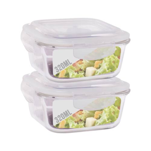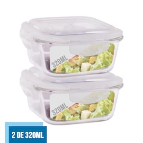 Conjunto com 2 Potes de Vidro com Tampa Hermética Quadrado 320ml