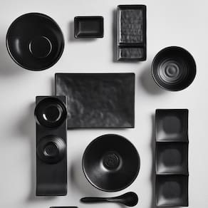 A linha Osaka foi criada para os pratos da culinária oriental, são peças 100% melamina, apresenta textura fosca na cor preta. Voltado para a culinária asiática, é uma peça cheia de beleza, charme e estilo. O prato para sushi Osaka contém compartimento especial para servir os molhos shoyu ou teriyaki. Feito com material de excelente qualidade, as peças tem alta resistência à queda ou riscos, não mancha e suporta temperatura de 70 ºC por até 2 horas. Perfeito para servir sushis, temakis e levar todas as delícias da culinária oriental para dentro da sua casa.