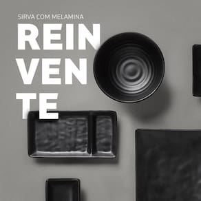 Material: - Melamina: composto sintético, que resulta em uma resina dura e resistente. Possui aparência semelhante a porcelana, porém com resistência superior.