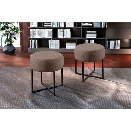 Conjunto 2 Puff Otávio Luxo Base Preta Castellar Móbile - Marrom Cacau