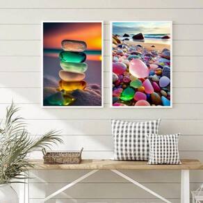Conjunto 2 quadros praia pedras coloridas 33x24cm - com vidro Moldura: madeira preta Informações do produto tire todas as suas dúvidas no descritivo abaixo: decoração para quarto, sala, cozinha, escritório, área gourmet e muito mais. Chega de paredes vazias medidas - cada peça tem 33x24cm a4 . Material do papel - papel fotográfico brilhante de altíssima resolução acabamento - todos os quadros são acompanhados de vidro para proteção da imagem. - moldura em madeira maciça na cor preta ou branca conforme produto escolhido e pendurador . - os quadros são embalados de forma segura com plástico bolha com camada dupla de acordo com o tamanho dos quadros. Garantia - garantia de 3 meses. Meu quadro chegou. Como posso fixá-lo Você precisa apenas de um martelo e um prego, pois os quadros já vão acompanhados de penduradores. Esta é a forma mais indicada. Como posso limpar meu quadro A limpeza é feita como um móvel comum da sua casa. Apenas um pano seco ou espanador são suficientes para tal Ean: 7896199138203