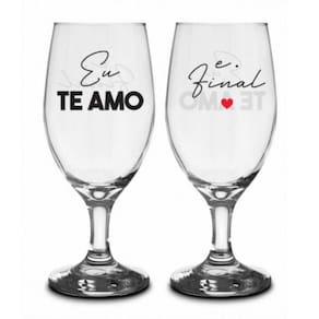 Ficha técnica - É adequado para lava-louças: Não - Tipo de produto: Taças - Cor: Transparente - Quantidade de kits: 1 - Diâmetro da boca: 7 - Unidades por kit: 2 - Fonte do produto: nacional - É produto personalizado: Não - Bebidas recomendadas: Sucos e refrigerantes - Com sorvete: Não - transparente: Te amo e ponto final - Formato de venda: Kit - Capacidade em volume: 330 - Material: Vidro