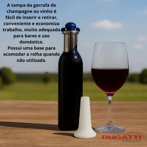 A tampa da garrafa de champagne ou vinho é fácil de inserir e retirar, conveniente e economiza trabalho, muito adequada para bares e uso doméstico. Possui uma base para acomodar a rolha quando não utilizada.