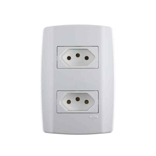 Informações Técnicas: - Modelo: Conjunto 2 Tomadas 3P 10A - Linha: Slim - Marca: Ilumi - Quantidade de tomadas: 2 - Amperagem: 10A - Tipo de tomada: 3P (três pinos) - Material: Plástico e metal - Cor: Branco - Voltagem: Bivolt