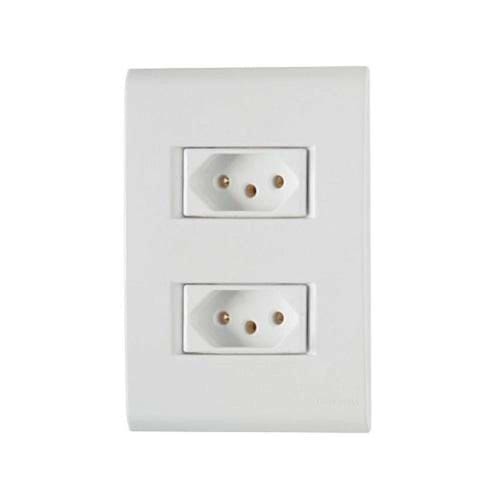 CONJUNTO 2 TOMADAS 3P 10A - LINHA LIZ - TRAMONTINA As placas e módulos da linha Liz são fabricadas em termoplástico com acabamento brilho na cor branca, que não retém poeira, unindo qualidade e praticidade O sistema é modular, em uma peça: placa com suporte incorporado Acompanham parafusos para a instalação
