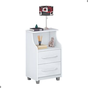 Ele é feito em MDF E MDP, contém corrediça metálica, puxadores cromados, pés de plástico e 1 nicho, contando com 2 gavetas.