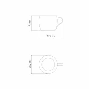 Observação: As xícaras possuem paredes duplas, o calor da bebida não passa para a parte externa