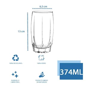 Conjunto Copos De Vidro Transparente Long Drink Amadeus 374ML 24 Unidades