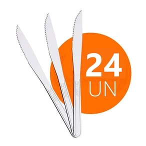 24 facas churrasco búzios inox tramontina ========== sobre o produto ========== Momentos de diversão e lazer pedem peças que combinem com a ocasião. Pensando nisso, a faca para churrasco tramontina búzios em aço foi desenvolvida. Sua espessura é ideal para cortes e sua lâmina em aço inox garante precisão e fácil manuseio. Sua durabilidade está ligada ao uso de material de qualidade, além disso, o talher pode ser levado à máquina de lavar louças e não arranha os seus pratos. Faça seus momentos agradáveis com tramontina. ========== especificações ========== Talher produzido em aço inox que mantém a beleza, a higiene e a durabilidade. Lâmina da faca tem maior durabilidade do fio devido ao tratamento térmico. Pode ir à máquina de lavar louças facilitando seu dia a dia. ========== ficha técnica ========== Unidades: 24 Comprimento: 20cm Largura: 1,5cm Lamina: 6cm Peso: 0,03 kg Marca: tramontina : 3 meses Estamos online para quaisquer dúvidas, Agradecemos e aguardamos o seu pedido. P: o produto é novo ou Marca: Não Informado