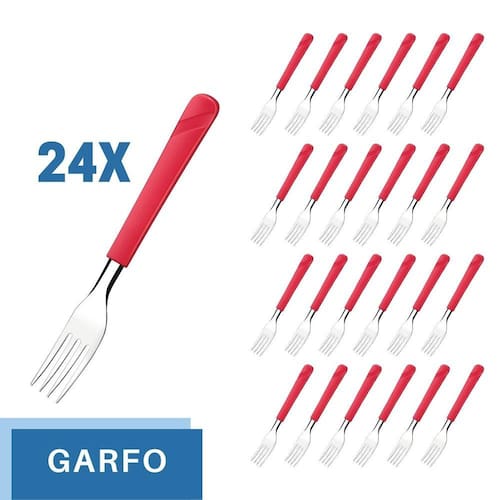 Conjunto 24 Garfos Aço Inox Cabo Plástico Vermelho Luna