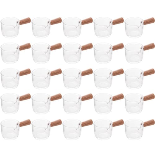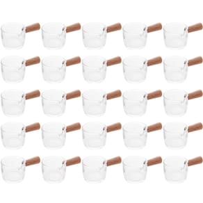 Conjunto 25 Molheiras de Vidro com Cabo de Bambu 50ml Cremeiras para Restaurantes Lyor.