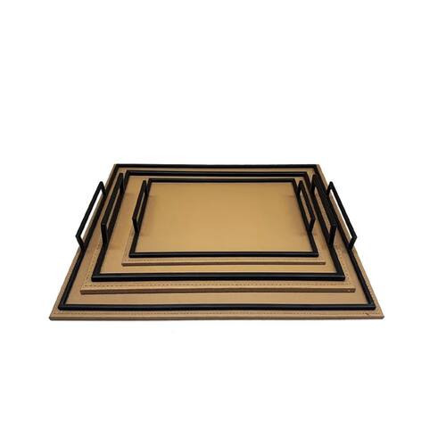Conjunto 3 Bandejas Decorativas em Couro Sintético Marrom TH0065 BTC
