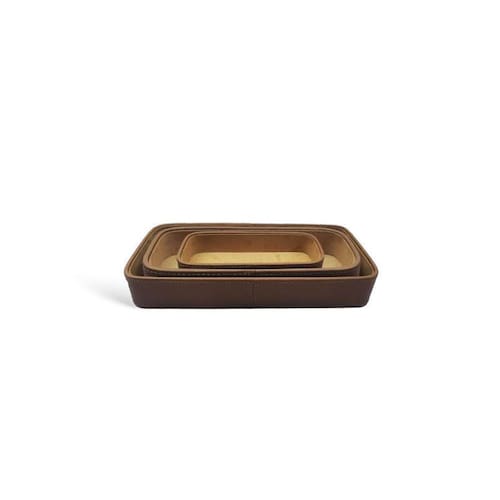 Conjunto 3 Bandejas Decorativas em Couro Sintético Marrom