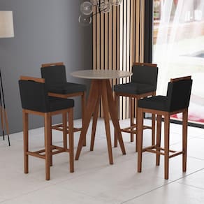 Banqueta Alta em Madeira Maciça Libéria é ideal para acompanhar refeições rápidas e happy hour com amigos e família. Produzida em madeira maciça é um móvel bonito e resistente, seu tecido 100% poliéster, garante maior conforto a peça. Possui apoio para os pés.