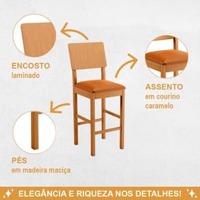 A Banqueta Jade une conforto e durabilidade em um design elegante e prático. Seu encosto é feito em madeira maciça e o assento com D23, proporcionando um conforto ideal para longos períodos de uso. A estrutura em madeira maciça não só garante a robustez e estabilidade da banqueta, mas também adiciona um toque de elegância natural ao seu ambiente. Ideal para complementar qualquer bar ou cozinha, a Banqueta Jade é uma excelente escolha para quem valoriza tanto o conforto quanto a durabilidade em móveis.