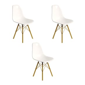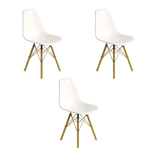Conjunto 3 Cadeiras Eames Design Moderno Tubo de Ferro Dourado Assento Branco