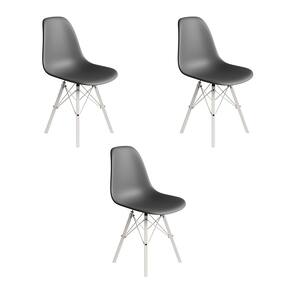 Conjunto 3 Cadeiras Eames Estilo Moderno em Ferro Branco com Assento Cinza