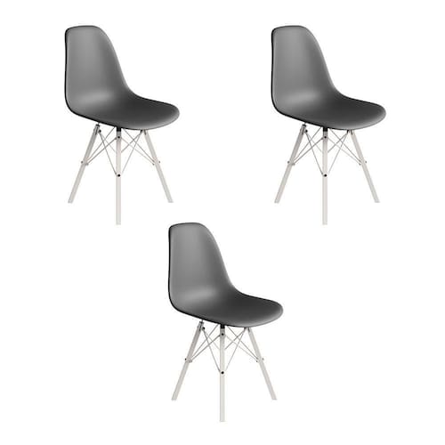 ATENÇÃO AS IMAGENS SÃO MERAMENTE ILUSTRATIVAS E PODEM SOFRER VARIAÇÕES DE COR E PEQUENOS DETALHES DE ACORDO COM O SEU MONITOR, ILUMINAÇÃO DO AMBIENTE E ATÉ MESMO A SUA PERCEPÇÃO VISUAL.Conjunto 3 Cadeiras Eames Estilo Moderno em Ferro Branco com Assento Cinza