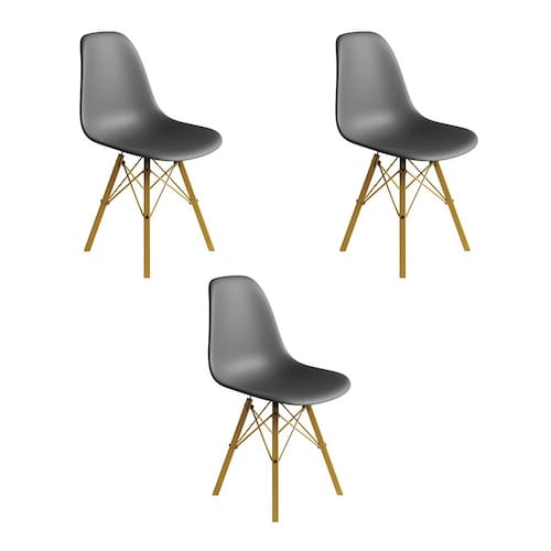 Conjunto 3 Cadeiras Eames Estilo Moderno em Ferro Dourado com Assento Cinza - Bege