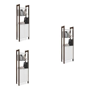 Medida total das 3 estantes juntas: 166x195x36 cm (AxLxP). Altura do Conjunto: 165.5 cm Ambiente Principal: Sala de Estar codigo_ean: 7909903054789 Cor: Branco/Nogal Cor do Produto: Branco/Nogal Informação Complementar: 3x Estante para Livros Alta 2 Portas AZ Branco/Preto Onix Largura: 65 cm Altura: 165,5 cm Peso: 28,3 kg Profundidade: 35,5 cm Necessita Montagem: Sim