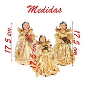 Conjunto 3 Estátuas De Natal Decorativa Em Resina Anjos Musicais Dourados 17,5cm -