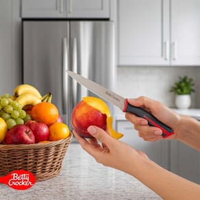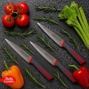 O jogo com 3 facas multiuso em aço inoxidável da Betty Crocker é a combinação perfeita entre resistência, funcionalidade e estilo.