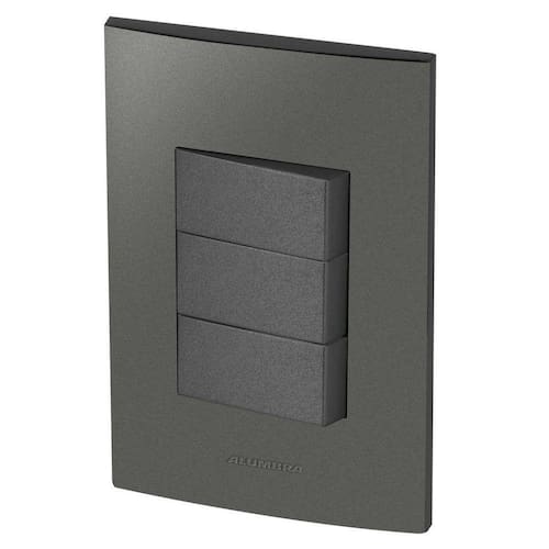 Alumbra Inova Pro Class - Placas Grafite / Módulos Grafite Linha Modular de Interruptores e TomadasConjunto Completo Desmontado:3 Módulos de Interruptor Paralelo1 Placa 4X2 para 3 Módulos1 Suporte 4X22 ParafusosCor: GrafitePara montar é apenas um click, só encaixar Marca de conformidade de produtos certificados.