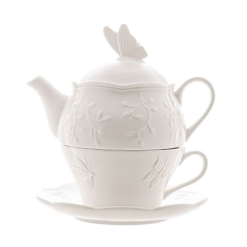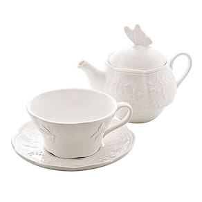 Conjunto 3 Peças de Chá de Porcelana New Bone Butterfly Flower - Lyor