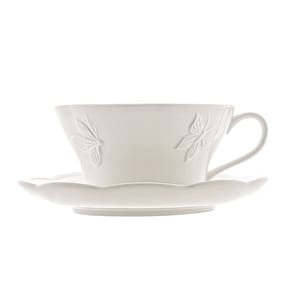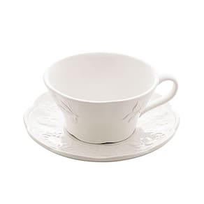 1 Xícara de Chá com Pires de Porcelana New Bone Butterfly Flower 210ml