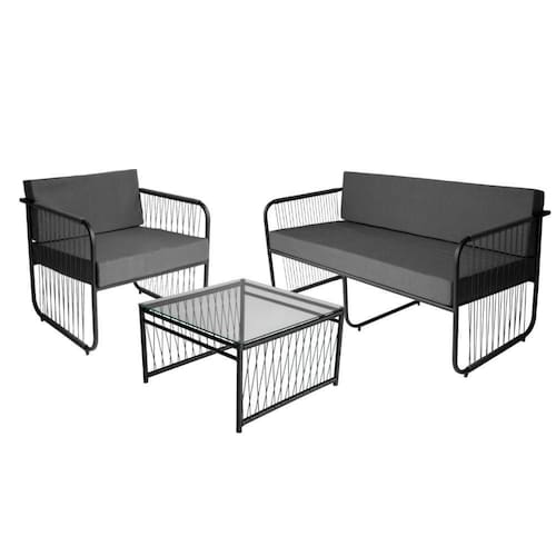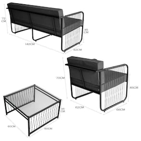 Conjunto 3 Peças Em Aço Carbono E Fibra Sintética Córdova Preto/cinza Este elegante conjunto foi desenvolvido para transformar seu ambiente interno com sofisticacao e conforto. Com estrutura em aco carbono de alta qualidade e acabamento em fibra sintetica, oferece resistencia e durabilidade para suportar as diversas ocasioes, ideal para areas como gourmet, externas, de churrasqueira, recepcao, ediculas e muito mais. A namoradeira e as poltronas possuem assentos estofados com tecido impermeavel, proporcionando conforto durante longas horas de lazer. O design artesanal de cada peca garante exclusividade, fazendo deste conjunto uma opcao perfeita para quem busca estilo e funcionalidade.