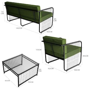 Conjunto 3 Peças Em Aço Carbono E Fibra Sintética Córdova Preto/verde Este elegante conjunto foi desenvolvido para transformar seu ambiente interno com sofisticacao e conforto. Com estrutura em aco carbono de alta qualidade e acabamento em fibra sintetica, oferece resistencia e durabilidade para suportar as diversas ocasioes, ideal para areas como gourmet, externas, de churrasqueira, recepcao, ediculas e muito mais. A namoradeira e as poltronas possuem assentos estofados com tecido impermeavel, proporcionando conforto durante longas horas de lazer. O design artesanal de cada peca garante exclusividade, fazendo deste conjunto uma opcao perfeita para quem busca estilo e funcionalidade.