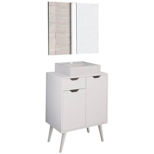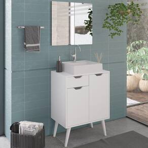 Conjunto 3 Peças Para Banheiro BN3600X37X38, uma ótima opção para quem busca por um banheiro elegante e cheio de personalidade. Gabinete e Espelheira com estrutura em MDP de 15mm, proporcionando maior durabilidade e resistência a peça, contando com acabamento revestido em BP (semi - brilho). Gabinete Composto por 1 gaveta com corrediças metálicas, 2 portas com dobradiças metálicas, 1 prateleira com amplo espaço para armazenar diversos itens e 4 pés retro palito. Suportando 10kg no tampo, 3kg a gaveta e 3kg a prateleira. Espelheira composta por espelho com design retangular e bordas metalizadas. Cuba produzida em mármore sintético, contando com acabamento em brilho polido. Suportando até 4 litros e 10kg. Possui furação para instalação de torneira (torneira não inclusa). Unindo elementos do design contemporâneo, que proporcionam uma ambientação intimista e com acabamentos refinados. Estes móveis chegarão na sua casa separados em 3 volumes.