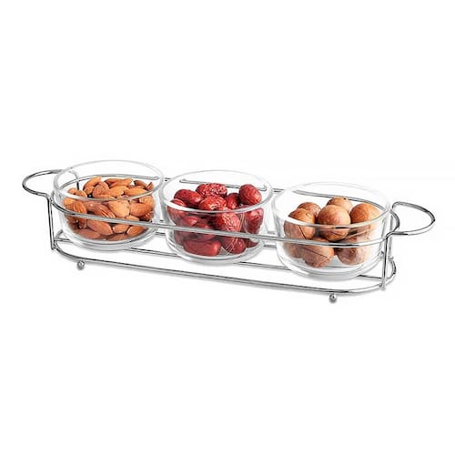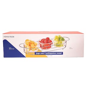 Conjunto 3 Petisqueiras Redondas em Vidro com Suporte 9378 - Mimo Style - Dorémi Casa e Decor