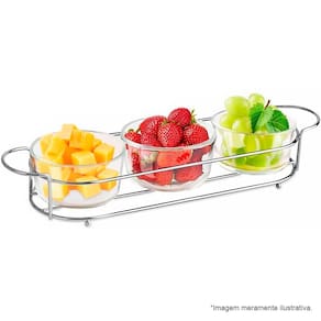 É o item perfeito para decorar e organizar sua mesa posta de uma forma bem mais elegante e prática. Acomoda facilmente bolachas, doces, cereais, frutas, gelatinas e outros alimentos que desejar. Fabricada em Vidro de alta qualidade e acompanha um suporte para manter as 3 petisqueiras juntas.