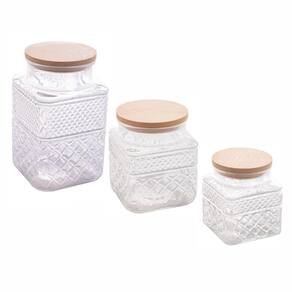 O recipiente é feito de vidro de alta qualidade, oferecendo transparência para identificar facilmente o conteúdo. Sua tampa em madeira não apenas adiciona um toque natural, mas também veda hermeticamente, garantindo a frescura dos alimentos.