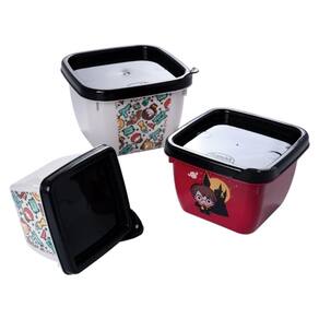 O Conjunto 3 Potes Conect Quadrado Harry Potter Plasutil traz praticidade e estilo para o dia a dia. Produzidos em plástico resistente e atóxico, são ideais para armazenar e transportar alimentos com segurança. As tampas possuem fechamento firme, evitando vazamentos e mantendo os alimentos frescos por mais tempo. O formato quadrado facilita o aproveitamento de espaço em geladeiras, armários e bolsas, enquanto a estampa temática de Harry Potter adiciona um toque divertido e exclusivo para fãs da saga.
