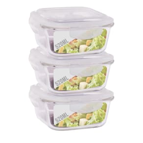 Conjunto com 3 Potes de Vidro com Tampa Hermética 520ml