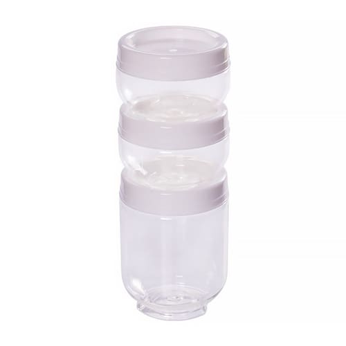 Os organizadores possuem tampa rosca que se encaixam e travam, e são conjuntos modulares empilháveis, permitindo que você economize espaço e organize seus objetos de forma prática e eficiente.