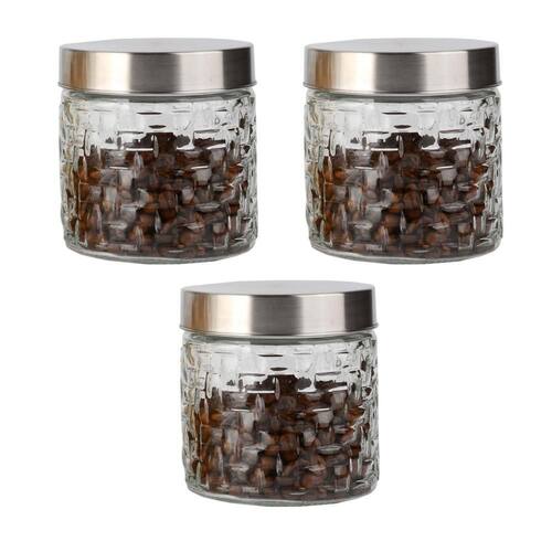 Conjunto 3 Potes Vidro Rattan Tampa Inox 800Ml Class Home