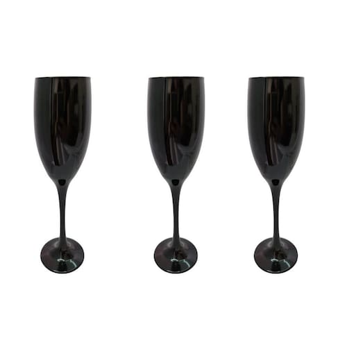 Conjunto 3 Taças Vidro Preta Champagne 190 ml Nadir Conjunto 3 Taças Vidro Preta Champagne 180 ml Nadir Eleve o charme das suas celebrações com o Conjunto 3 Taças Vidro Preta Champagne 186 ml da Nadir. Feita em vidro de alta qualidade, esta taça é o toque sofisticado que sua mesa precisa, unindo elegância e modernidade em um design refinado. Seu acabamento preto impecável transforma cada gole de champagne em uma experiência visual e sensorial única. Benefícios: