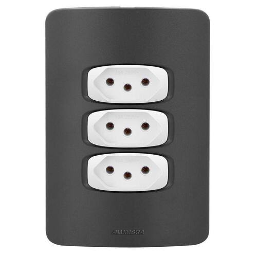Alumbra Gracia - Placa Black Maxx / Módulos Brancos / Interruptores e Tomadas Conjunto Completo Desmontado com: 3 Módulos de Tomada 20A 1 Placa para 3 módulos 4X2 1 Suporte 4X2 2 Parafusos Cor: Preto Para montar é apenas um click, apenas encaixar
