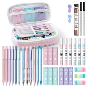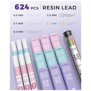 Os grafites em múltiplas espessuras foram desenvolvidos para traço suave e consistente, com um tubo de grafite colorido que possibilita usar a lapiseira 2,0 mm como lápis de cor mecânico em atividades criativas e marcações. As lapiseiras 0,5 mm e 0,7 mm possuem empunhadura triangular ergonômica para maior conforto em sessões longas de escrita, enquanto o modelo 0,9 mm inclui grip emborrachado e o modelo 2,0 mm conta com área antiderrapante e apontador integrado. O conjunto é indicado para pessoas a partir de 14 anos que buscam um kit completo de lapiseiras com grande volume de refis para uso prolongado.