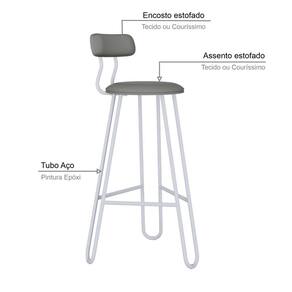 Conjunto 4 Banquetas Alta Ginger Courino Venus Cinza - Branco