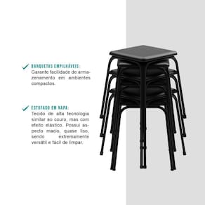 O Conjunto de Banquetas é ideal para quem busca por produtos multifuncionais. Seu design contemporâneo transmite jovialidade e personalidade para a decoração. Por serem compactas e leves, facilitam a movimentação pelos ambientes da casa além de proporcionar economia de espaço de armazenagem pois podem ser facilmente empilháveis.