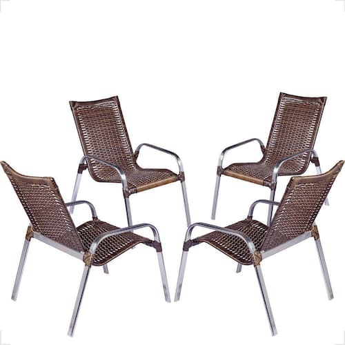 Kit 4 Cadeiras de Alumínio Para Área Externa Fortaleza Trama Artesanal Cálamus