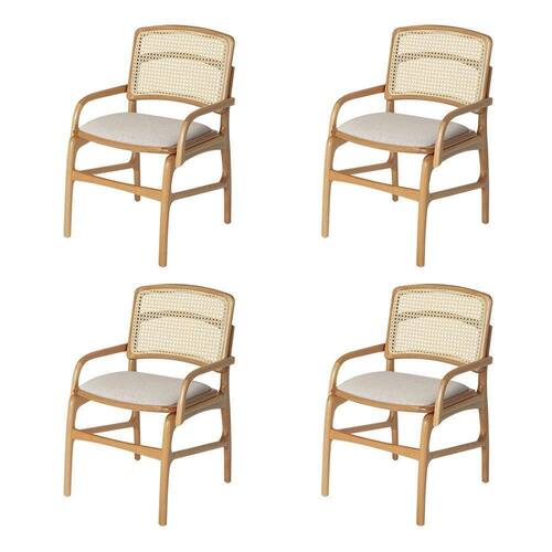 AS IMAGENS SÃO MERAMENTE ILUSTRATIVAS E PODEM SOFRER VARIAÇÕES DE COR E PEQUENOS DETALHES DE ACORDO COM O SEU MONITOR, ILUMINAÇÃO DO AMBIENTE E ATÉ MESMO A SUA PERCEPÇÃO VISUAL.Conjunto 4 Cadeiras de Jantar FlorenÃa em Madeira Jequitibà Natural BraÃo Encosto Palha Linho Bege