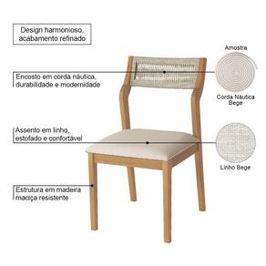 AS IMAGENS SÃO MERAMENTE ILUSTRATIVAS E PODEM SOFRER VARIAÇÕES DE COR E PEQUENOS DETALHES DE ACORDO COM O SEU MONITOR, ILUMINAÇÃO DO AMBIENTE E ATÉ MESMO A SUA PERCEPÇÃO VISUAL.Conjunto 4 Cadeiras de Jantar Lagum Conforto Estofada Jequitibà Natural Linho Bege e Corda NÃutica