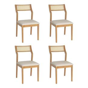 AS IMAGENS SÃO MERAMENTE ILUSTRATIVAS E PODEM SOFRER VARIAÇÕES DE COR E PEQUENOS DETALHES DE ACORDO COM O SEU MONITOR, ILUMINAÇÃO DO AMBIENTE E ATÉ MESMO A SUA PERCEPÇÃO VISUAL.Conjunto 4 Cadeiras de Jantar Lagum Conforto Estofada Jequitibà Natural Linho Bege Palha Sextavada
