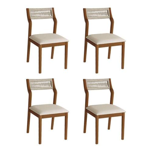 AS IMAGENS SÃO MERAMENTE ILUSTRATIVAS E PODEM SOFRER VARIAÇÕES DE COR E PEQUENOS DETALHES DE ACORDO COM O SEU MONITOR, ILUMINAÇÃO DO AMBIENTE E ATÉ MESMO A SUA PERCEPÇÃO VISUAL.Conjunto 4 Cadeiras de Jantar Lagum Conforto Estofada Jequitibà Terra Linho Bege e Corda NÃutica