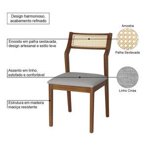AS IMAGENS SÃO MERAMENTE ILUSTRATIVAS E PODEM SOFRER VARIAÇÕES DE COR E PEQUENOS DETALHES DE ACORDO COM O SEU MONITOR, ILUMINAÇÃO DO AMBIENTE E ATÉ MESMO A SUA PERCEPÇÃO VISUAL.Conjunto 4 Cadeiras de Jantar Lagum Conforto Estofada Jequitibà Terra Linho Cinza e Corda NÃutica